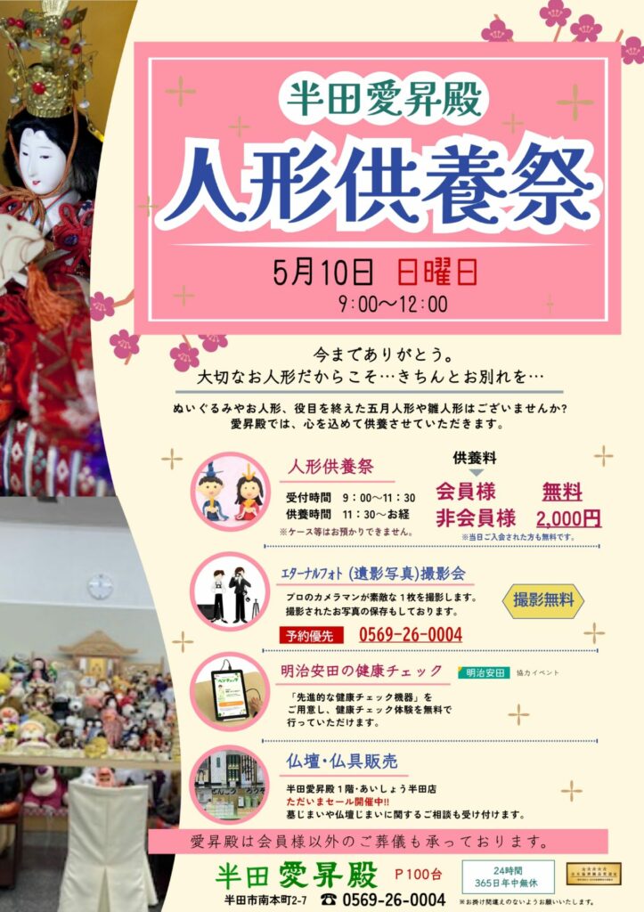半田愛昇殿にて人形供養祭を開催いたします。